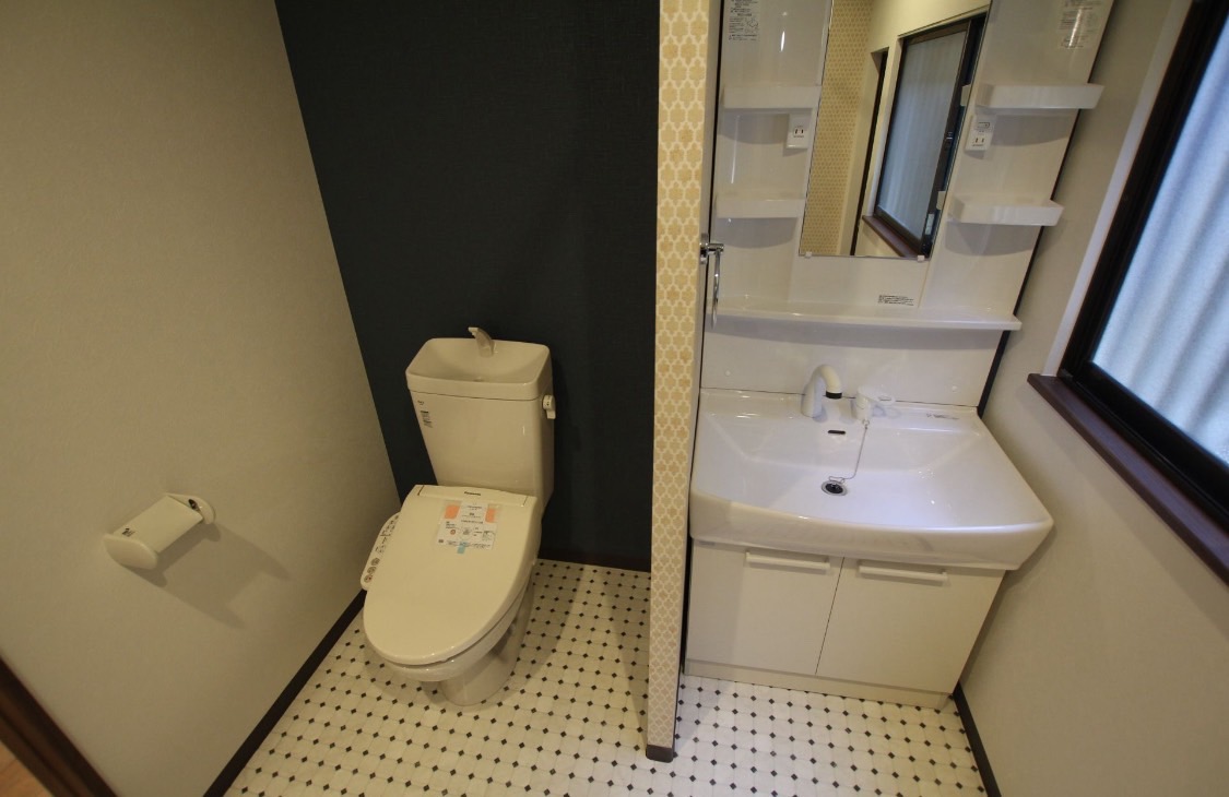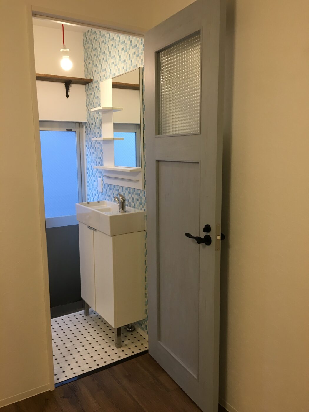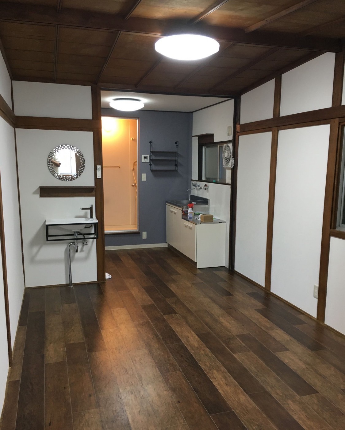 戸建て物件を1階と2階に分けた賃貸物件になります。 AZUL(青)をアクセントにしたカフェ風なデザインが印象的な、 スケルトンから造ったフルリノベーション物件。おすすめ物件です。